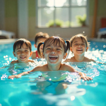 avec leurs copains au centre aquatique "La piscine de Mag".