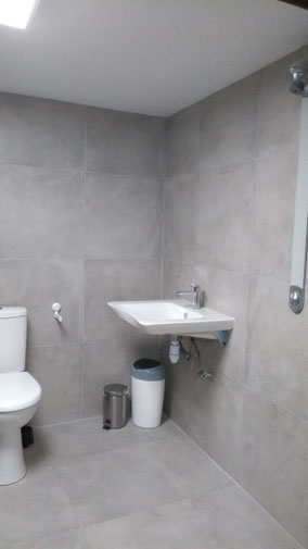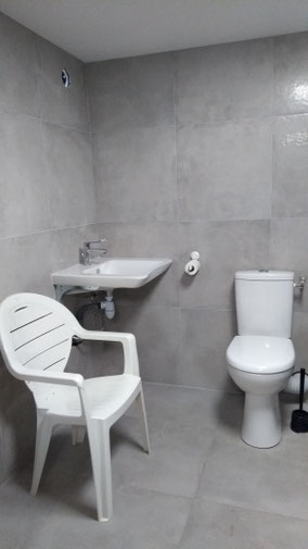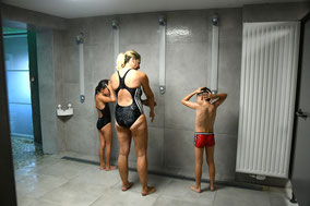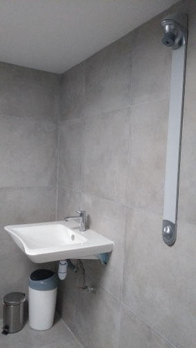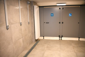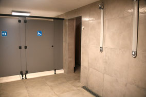 La partie douche intègre deux vestiaires, WC et douches indépendantes accès handicapés